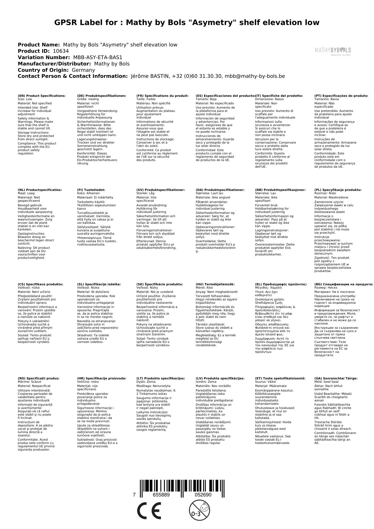 Mathy by Bols "Asymetry" Regal Erhöhung niedrig