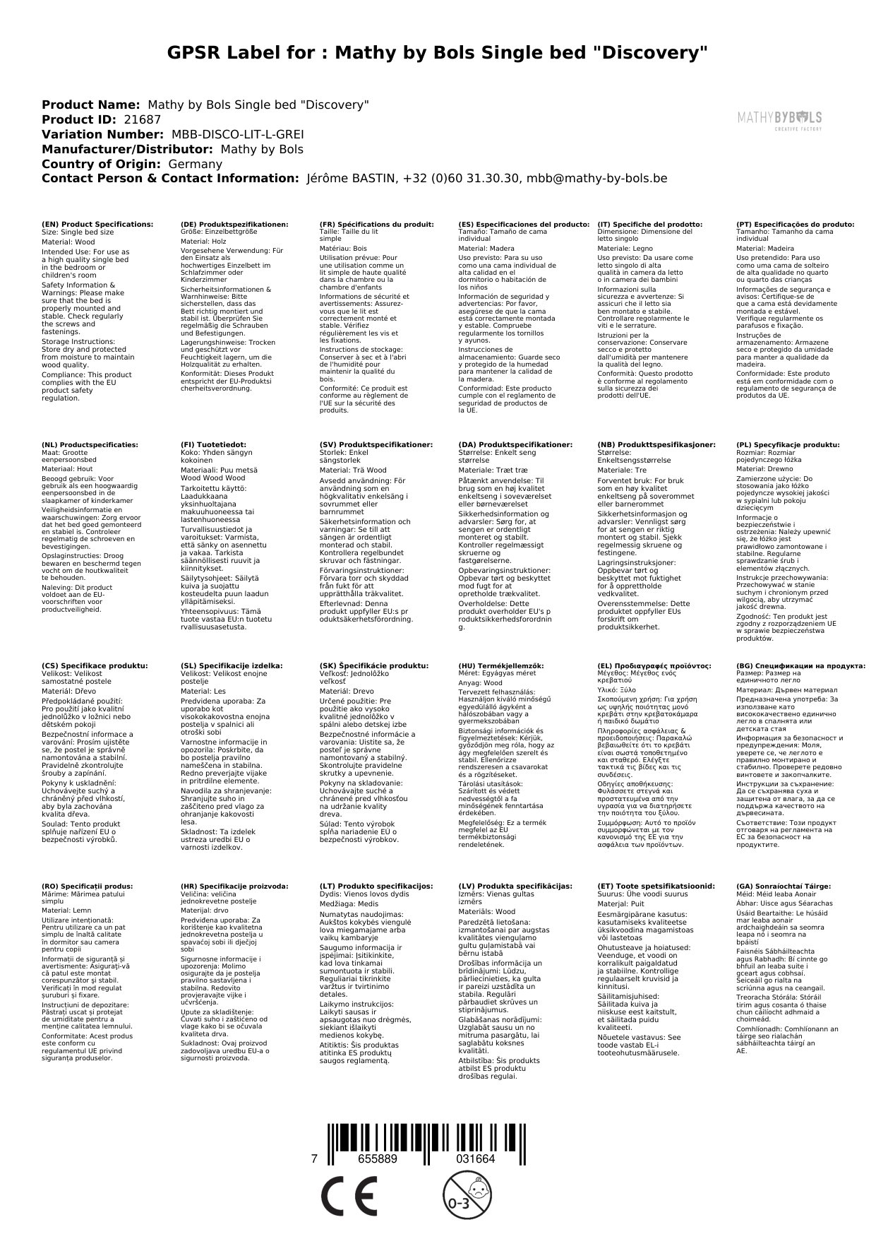 Mathy by Bols Einzelbett "Discovery", Farbe Elemente: raw
