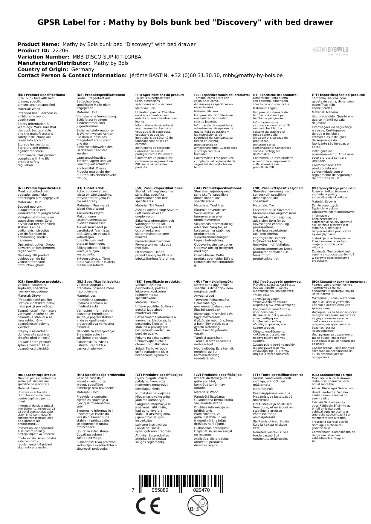 Mathy by Bols Etagenbett "Discovery" mit Bettschublade, Farbe Elemente: basalt grey
