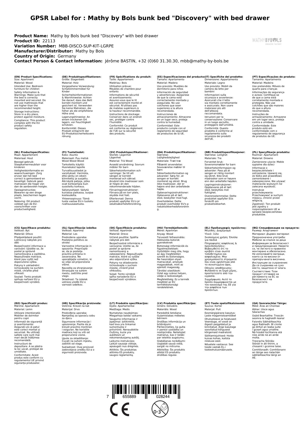 Mathy by Bols Etagenbett "Discovery" mit Bettschublade, Farbe Elemente: pearl grey