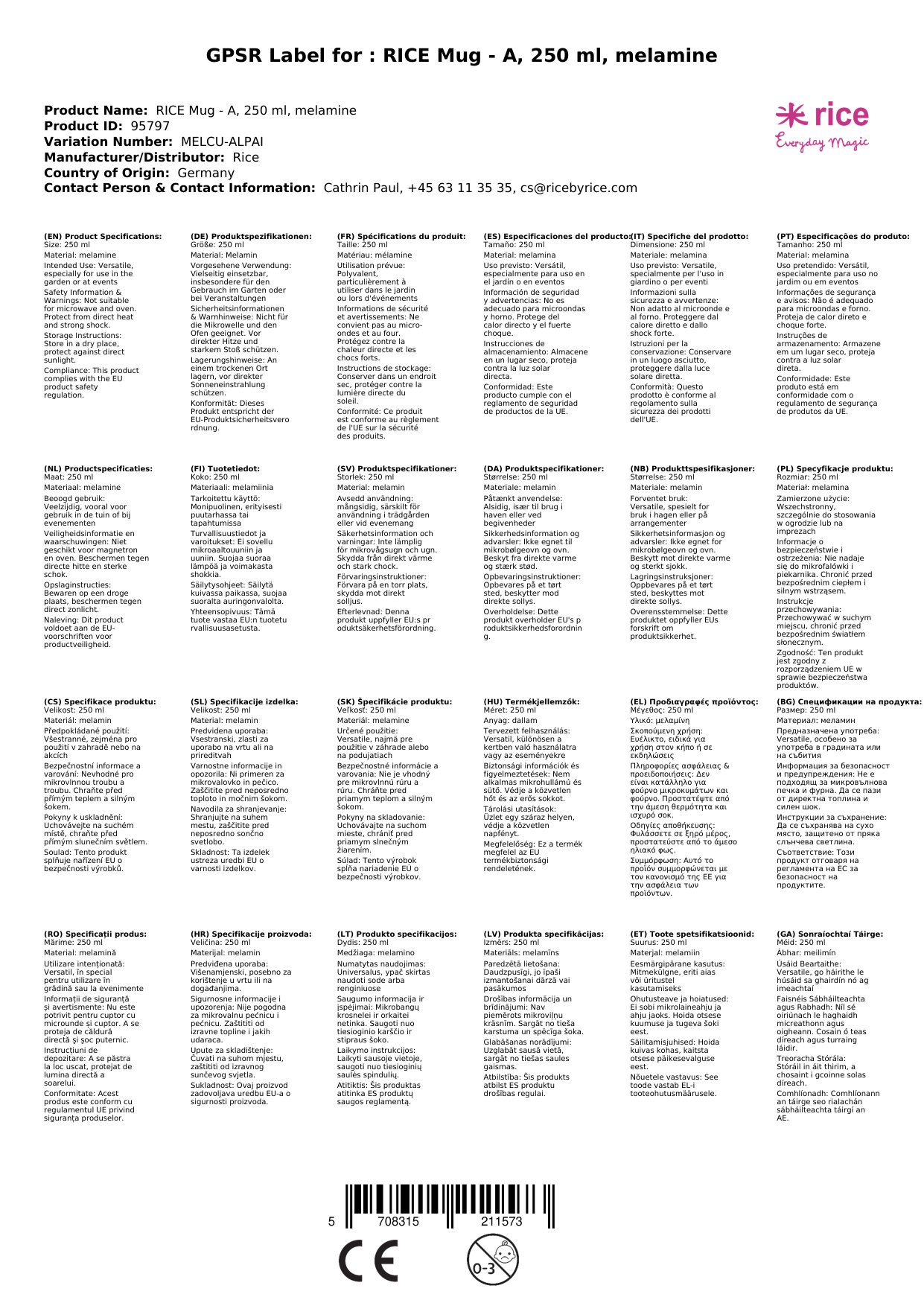 Stellen Sie eine Frage, um mehr über das Produkt zu erfahrenRICE Becher - A, 250 ml, Melamin
