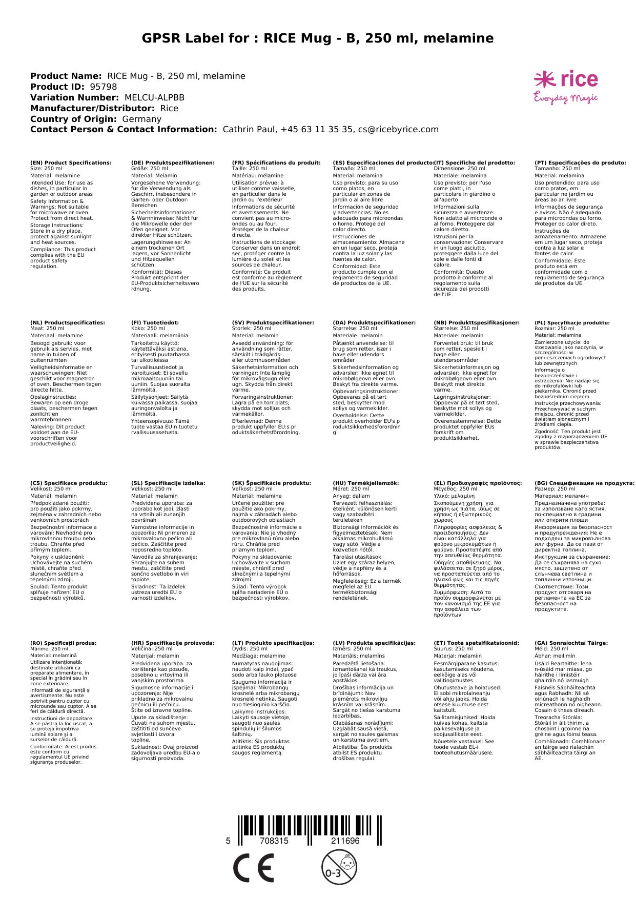 Stellen Sie eine Frage, um mehr über das Produkt zu erfahrenRICE Becher - B, 250 ml, Melamine