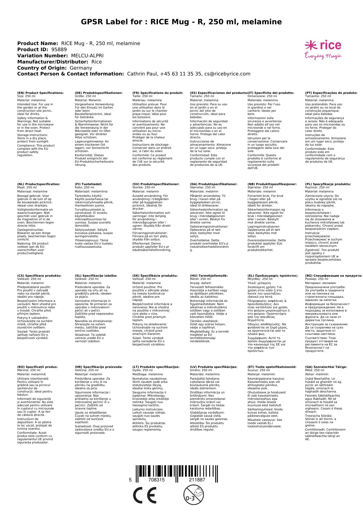 Stellen Sie eine Frage, um mehr über das Produkt zu erfahrenRICE Becher - R, 250 ml, Melamine