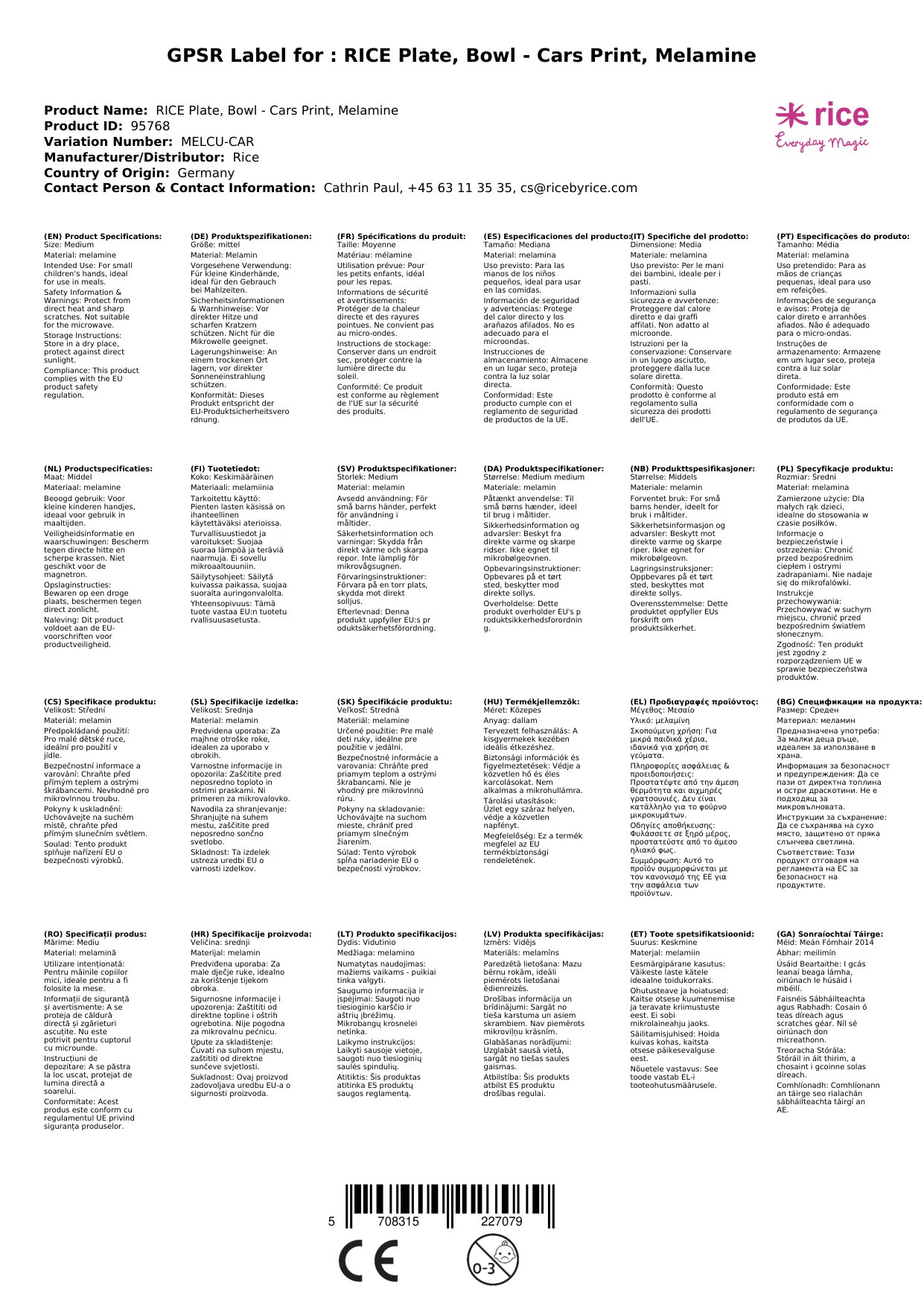 Stellen Sie eine Frage, um mehr über das Produkt zu erfahrenRICE Teller, Schüssel - Cars Print, Melamin