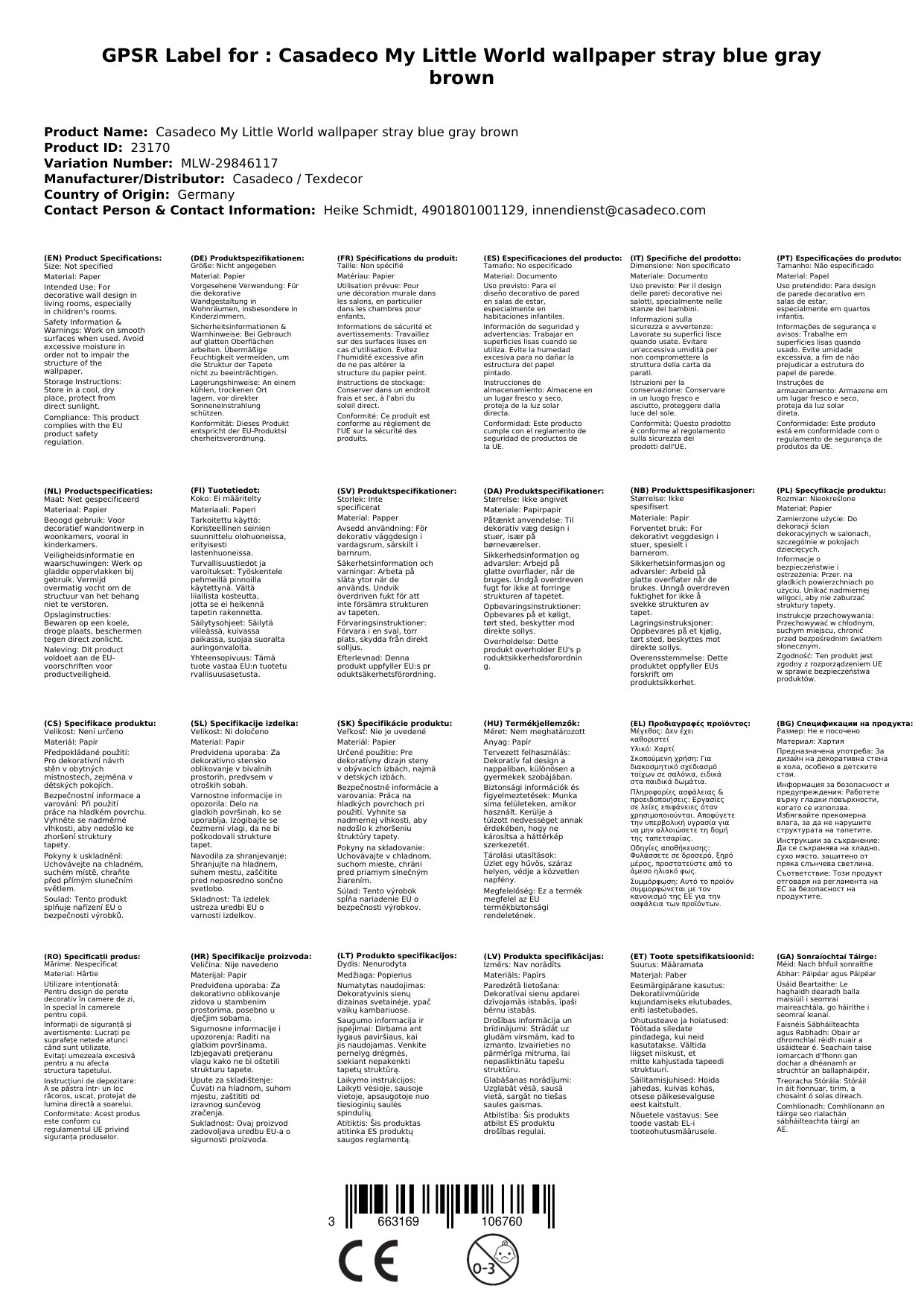 Die aktuelle Lieferzeit der Tapete ist oben neben den Produktfotos angegeben. Sollte Sie zum Zeitpunkt Ihrer Bestellung nicht bei uns lagernd sein, wird sie sofort bei Casadeco nachgeordert.