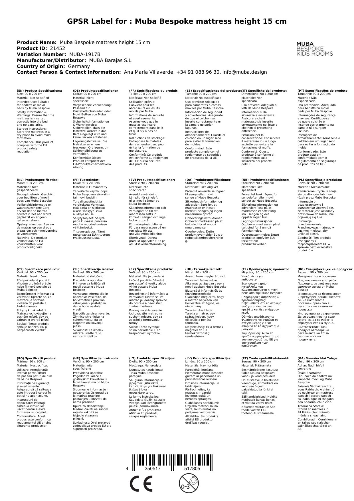 Stellen Sie eine Frage, um mehr über das Produkt zu erfahrenDie Matratze passt in alle Muba Bespoke Betten und sorgt für einen wohligen Schlafkomfort Ihres Kindes. Sie verzichtet auf die bei Erwachsenen üblichen Schlafzonen. Ihr Kind liegt überall sicher und bequem und erhält zudem eine gute Unterstützung für den ganzen Körper. Da Kinder eher selten an der Stelle schlafen, an der sie ursprünglich hingelegt wurden, sind Zonen völlig überflüssig. Die Matratze hat eine Höhe von 15 cm und ist in verschiedenen Breiten und Längen auswählbar. Natürlich können Sie sie auch für andere passende Bettmodelle fremder Hersteller verwenden.