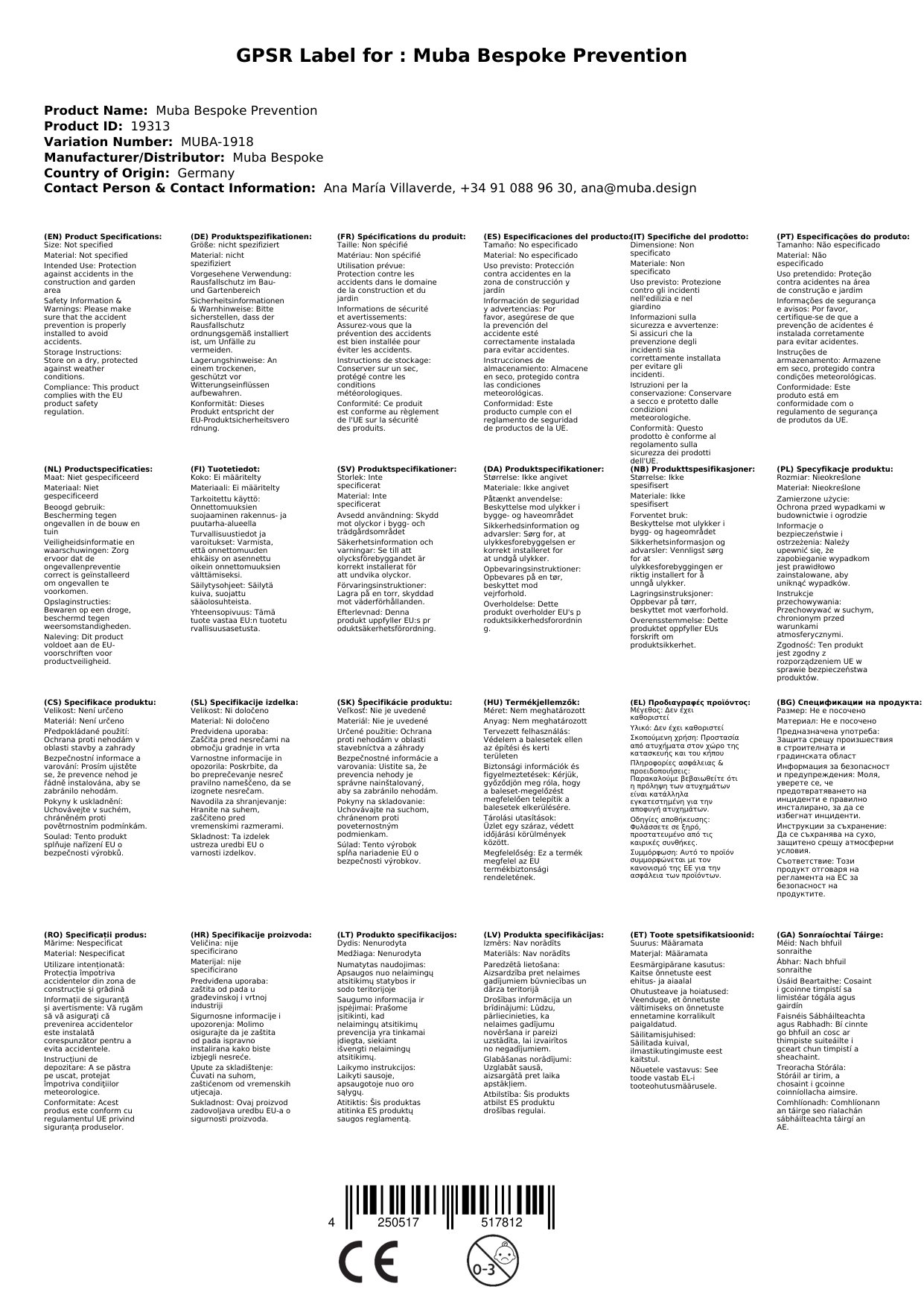 Der Rausfallschutz wird für Sie in Spanien bestellt und zu uns geliefert. Die Lieferzeit ist oben angegeben.