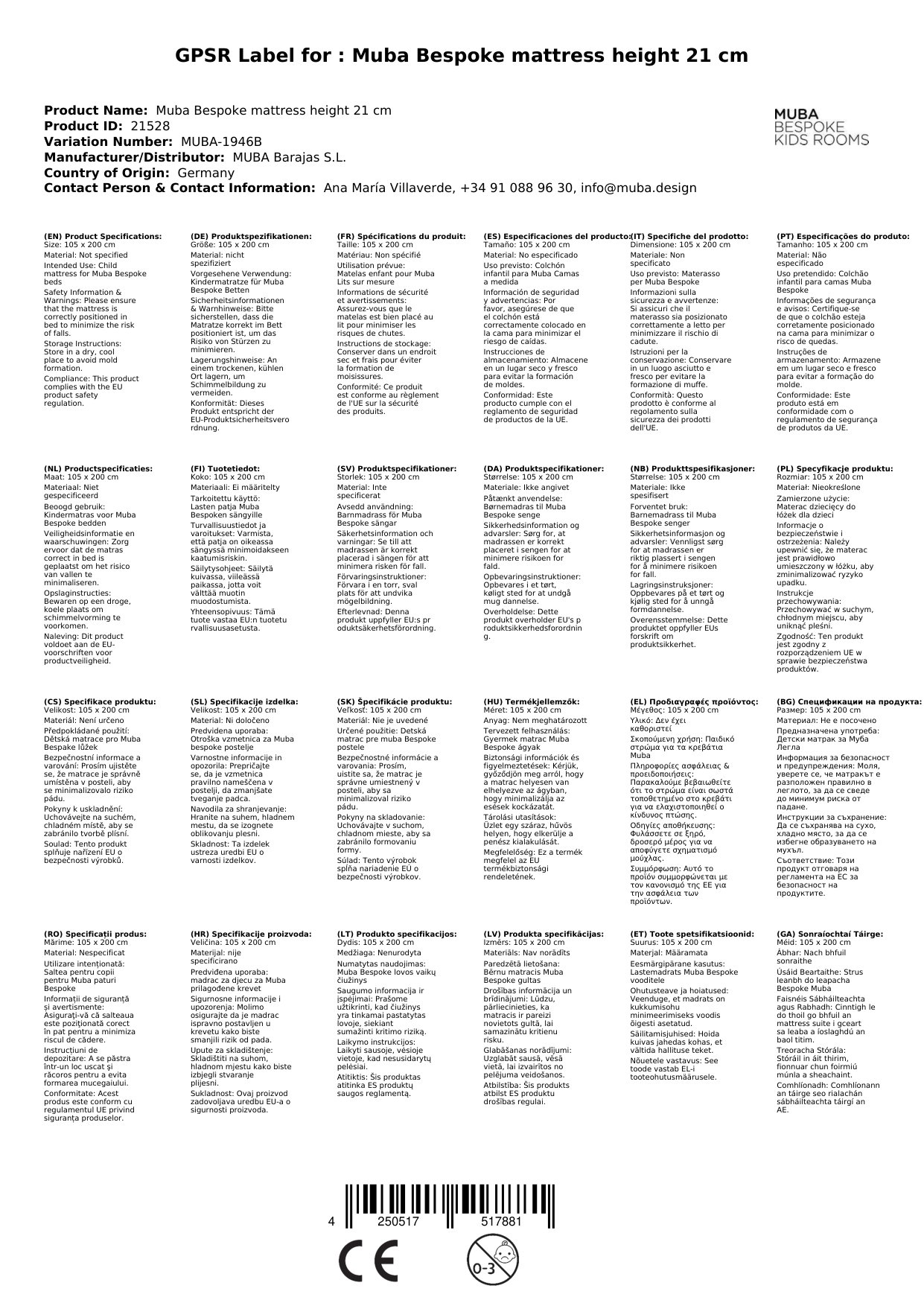 Stellen Sie eine Frage, um mehr über das Produkt zu erfahrenDie Matratze passt in alle Muba Bespoke Betten und sorgt für einen wohligen Schlafkomfort Ihres Kindes. Sie verzichtet auf die bei Erwachsenen üblichen Schlafzonen. Ihr Kind liegt überall sicher und bequem und erhält zudem eine gute Unterstützung für den ganzen Körper. Da Kinder eher selten an der Stelle schlafen, an der sie ursprünglich hingelegt wurden, sind Zonen völlig überflüssig. Die Matratze hat eine Höhe von 21 cm und ist in verschiedenen Breiten und Längen auswählbar.