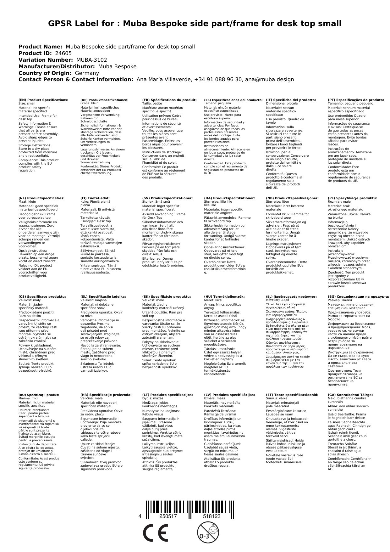 Muba Bespoke Seitenteil/Rahmen für Schreibtischplatte klein