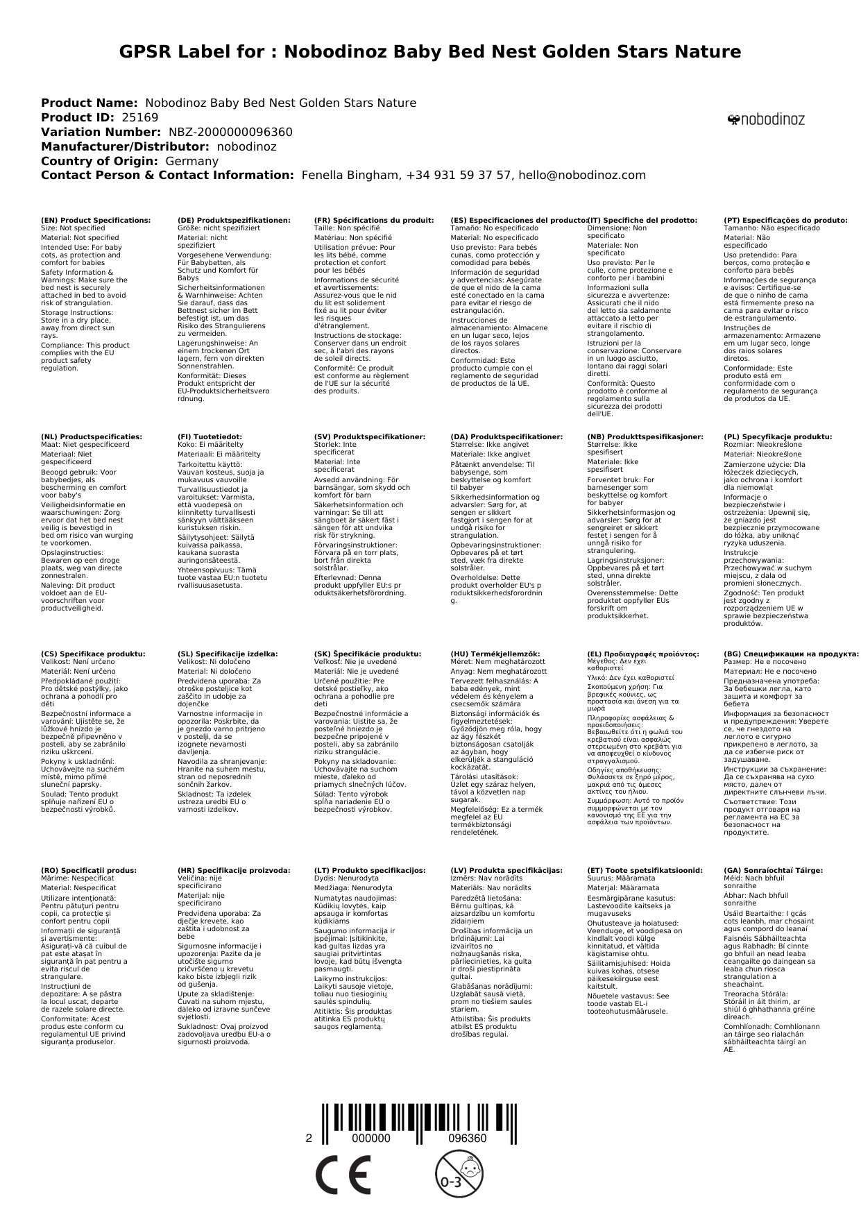 Stellen Sie eine Frage, um mehr über das Produkt zu erfahrenHier sehen Sie eine wunderbares Nestchen für Babybetten des spanischen Labels Nobodinoz.