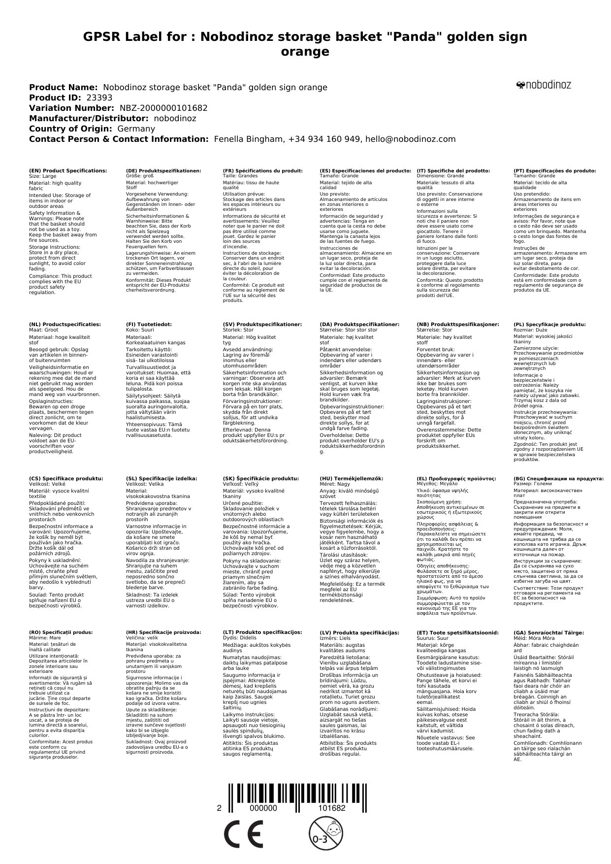 Nobodinoz Aufbewahrungskorb "Panda" goldene Zeichen orange, Größe: gross