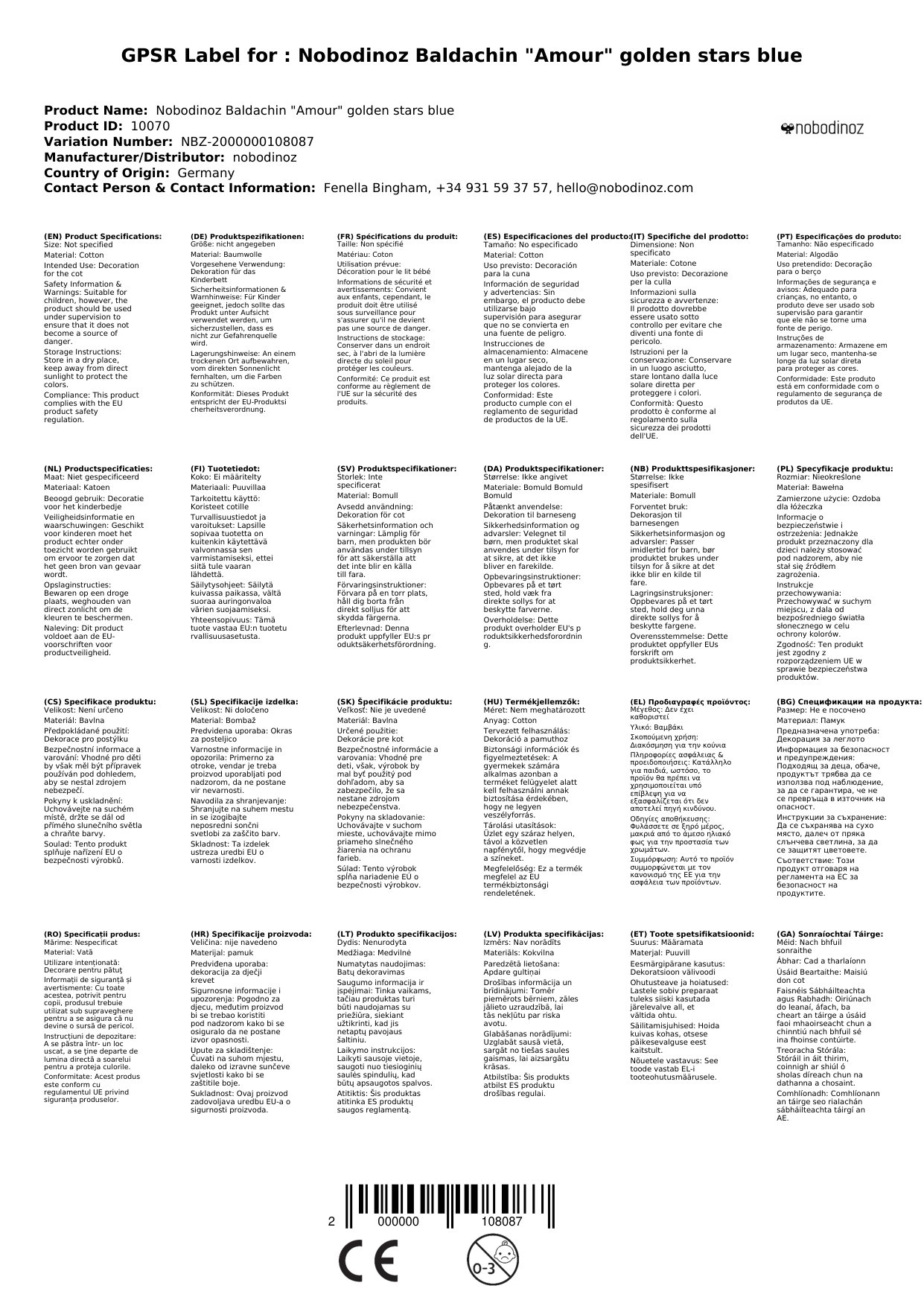 Wenn der Baldachin zum Zeitpunkt Ihrer Bestellung nicht bei uns lagernd ist, ordern wir sofort in Spanien bei Nobodinoz nach. Die Aktuelle Lieferzeit sehen Sie oben angegeben.