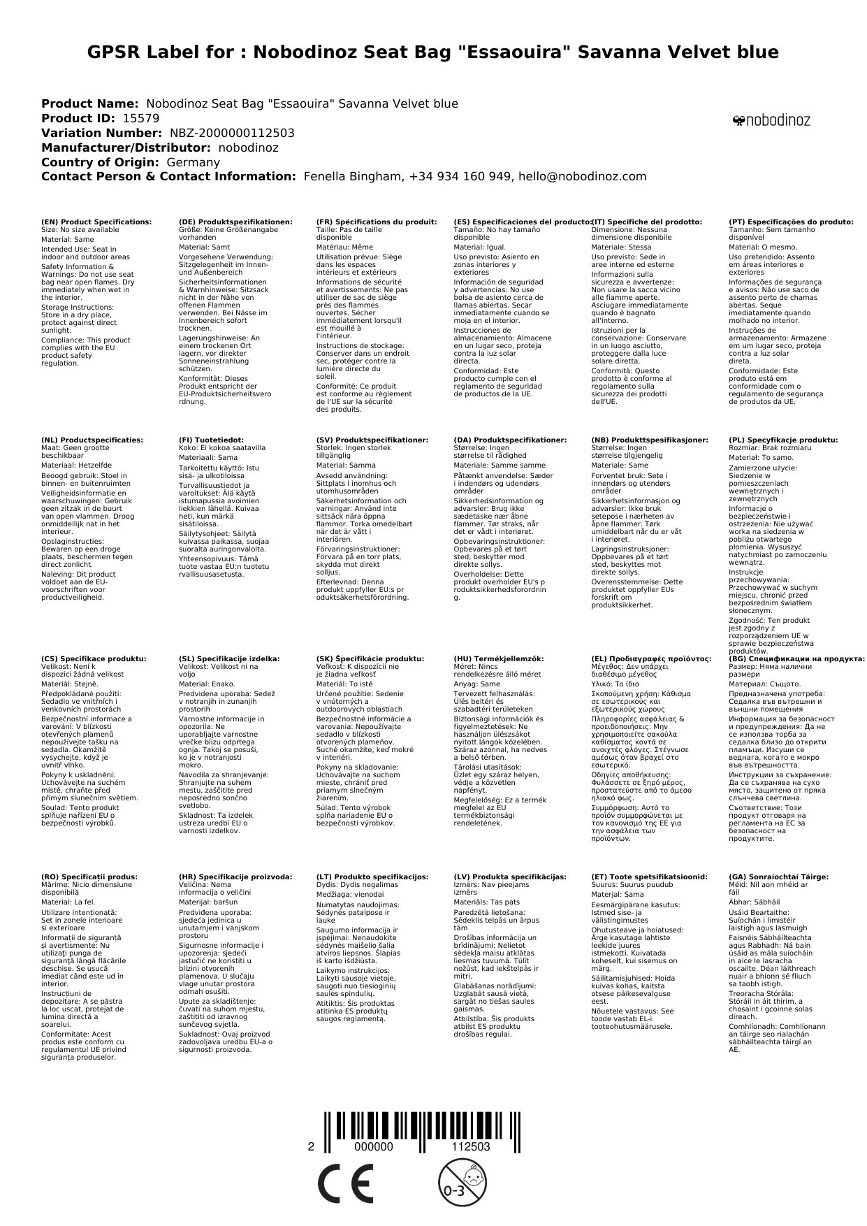 Stellen Sie eine Frage, um mehr über das Produkt zu erfahrenHier sehen Sie einen wunderbaren Sitzsack des spanischen Labels Nobodinoz.
