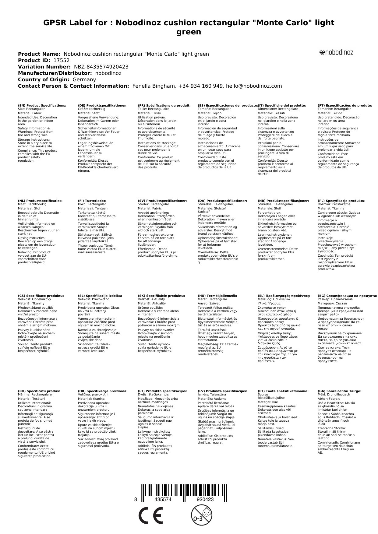 EU-Verantwortliche Telefonnummer: +34 931 59 37 57