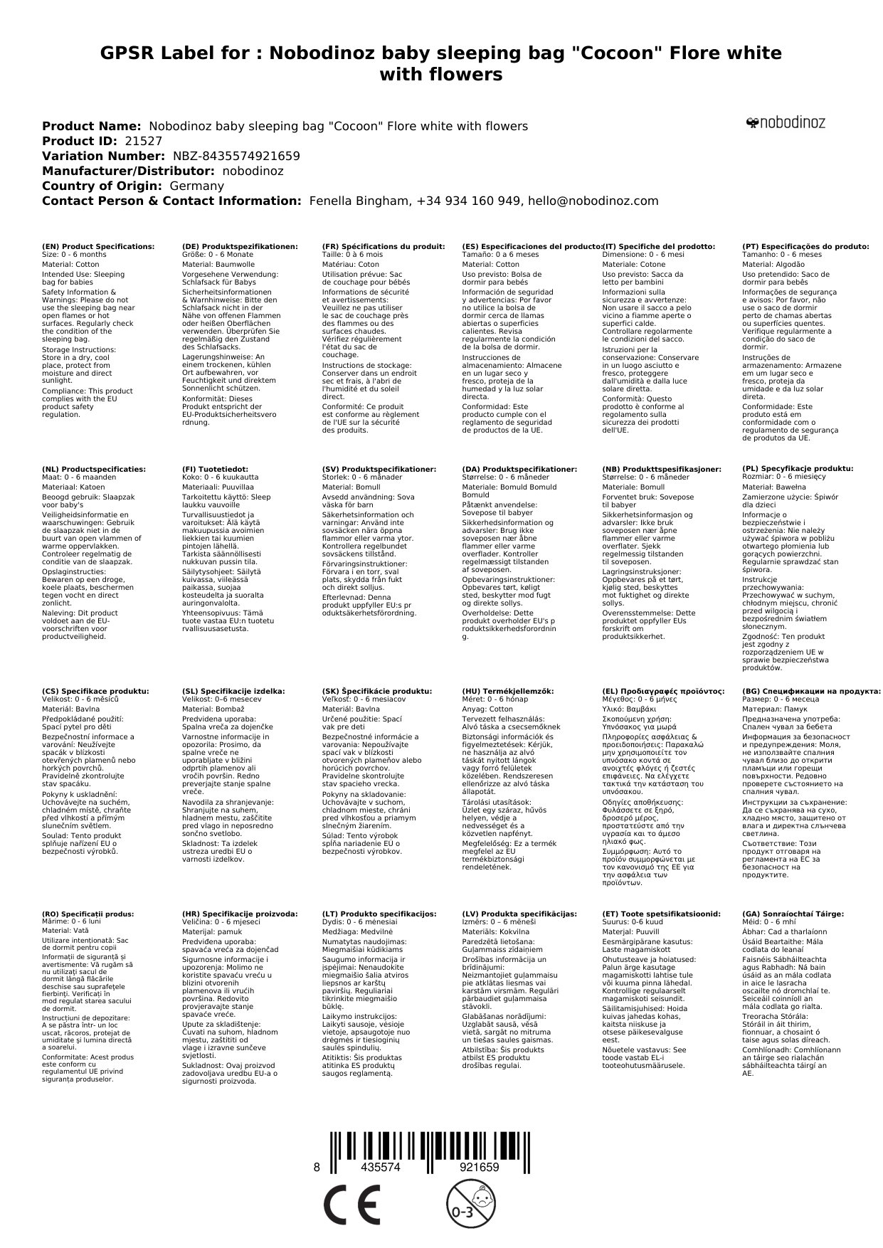 Stellen Sie eine Frage, um mehr über das Produkt zu erfahrenHier sehen Sie einen wunderbaren Babyschlafsack des spanischen Labels Nobodinoz.