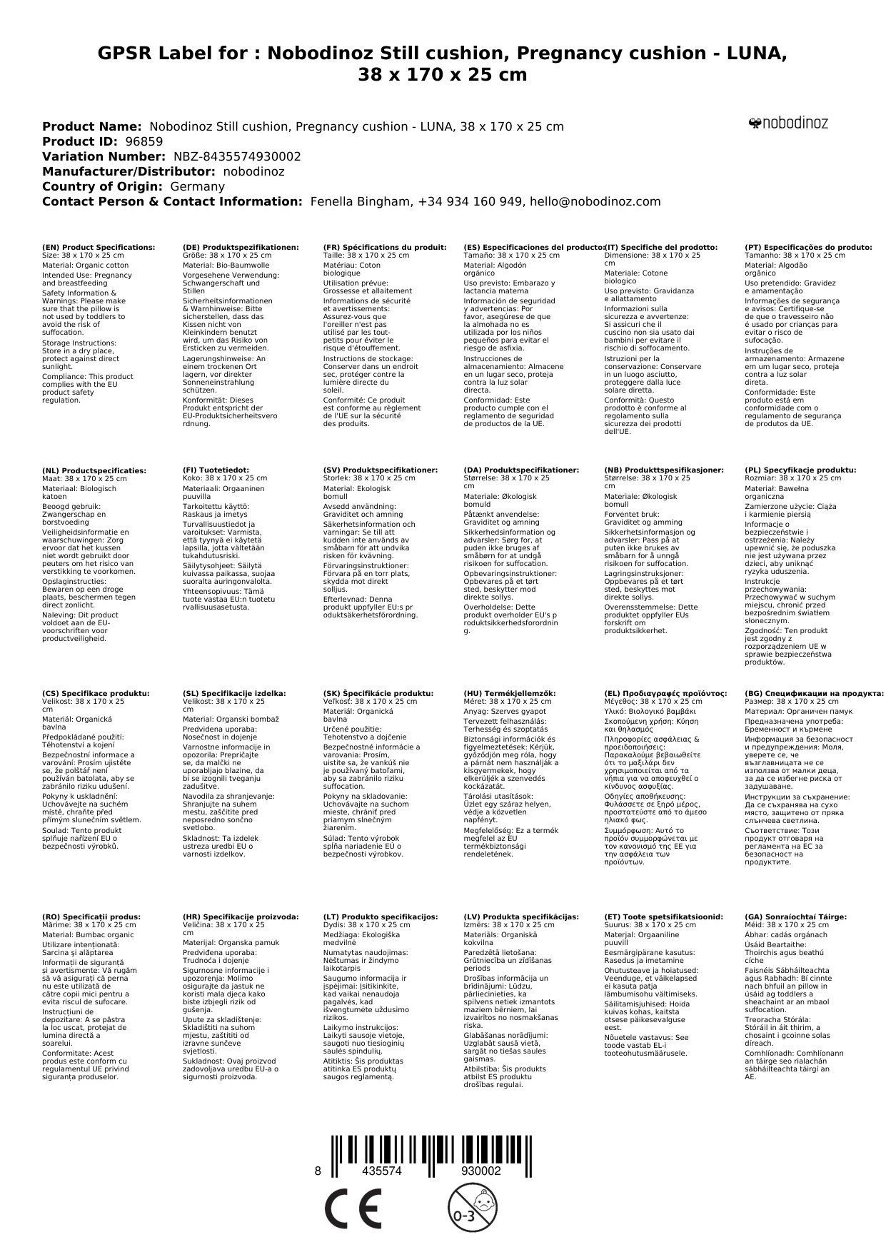 Stellen Sie eine Frage, um mehr über das Produkt zu erfahrenStillkissen, Schwangerschaftskissen - LUNA, 38 x 170 x 25 cm