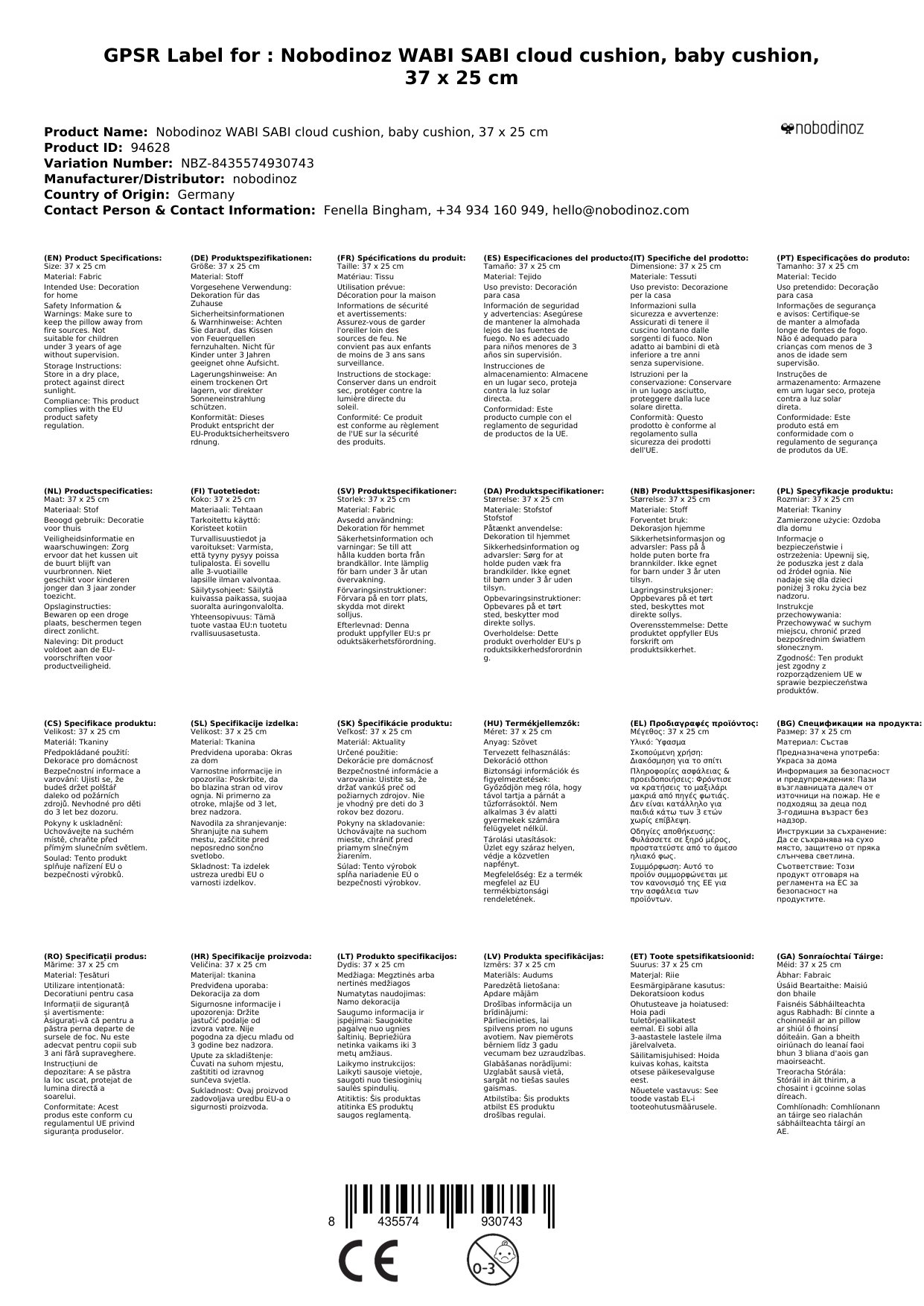 - 37 x 25 x 12 cm Abmessungen: Mit einer Größe von 37 x 25 x 12 cm ist das Kissen ideal für Kinder als Kopfkissen zum Schlafen oder als dekoratives Kissen für jeden Raum.