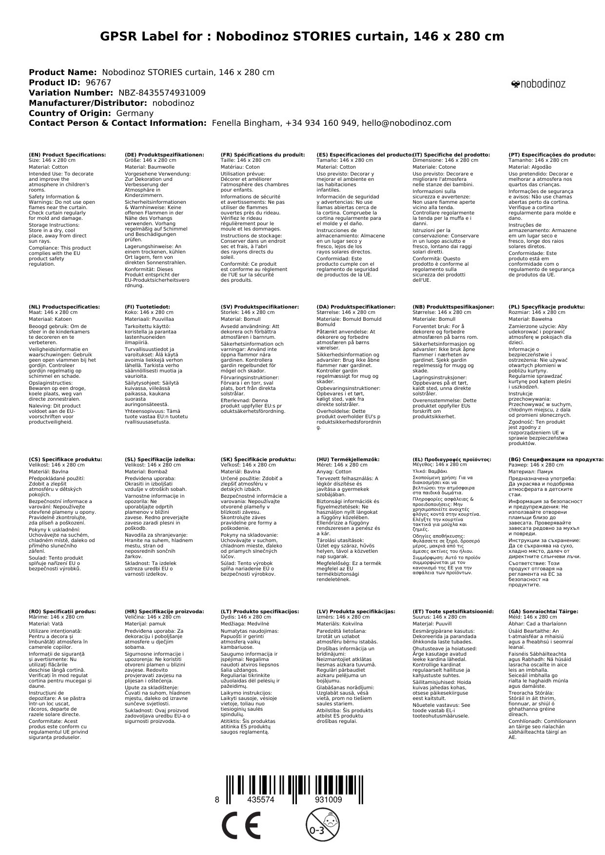 Nobodinoz STORIES Vorhang, 146 x 280 cm