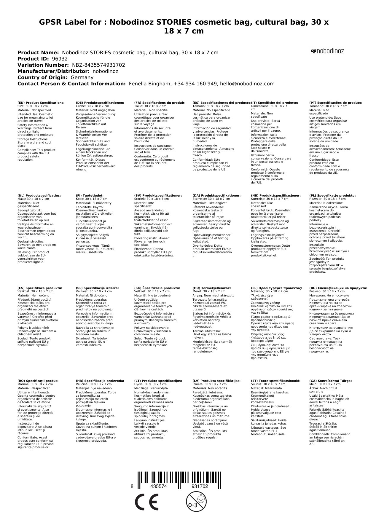 - Die nobodinoz-STORIES Kosmetiktasche ist der perfekte Begleiter für Eltern, die viel unterwegs sind und dabei eine stressfreie Reise möchten, da Sie schnell auf alle benötigten Artikel zugreifen können.