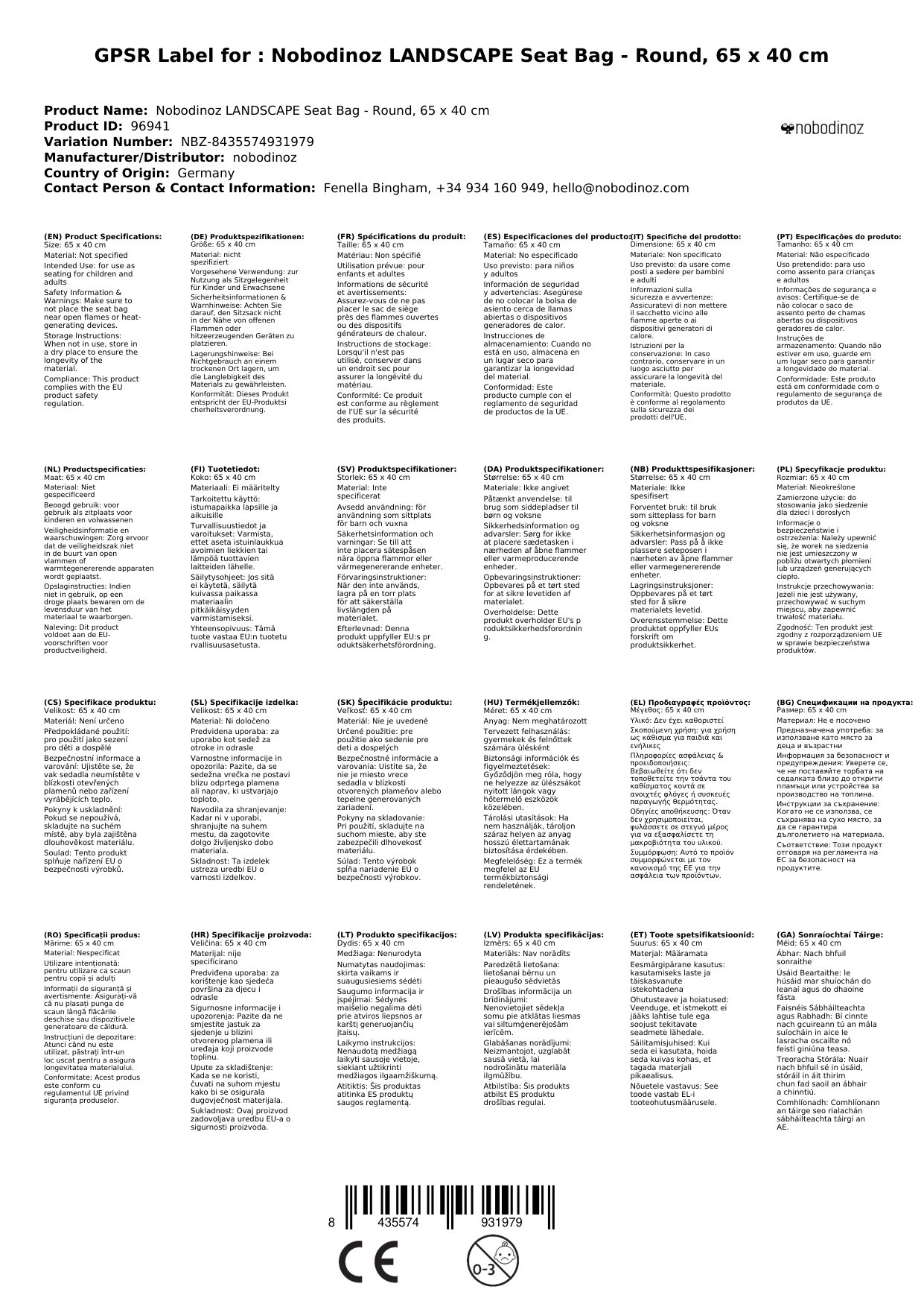 - Robust und pflegeleicht:Das Futter besteht aus 100 % Polypropylen und ist somit leicht zu reinigen. Die Füllung aus expandiertem Polystyrol sorgt für einen langlebigen Sitzkomfort.