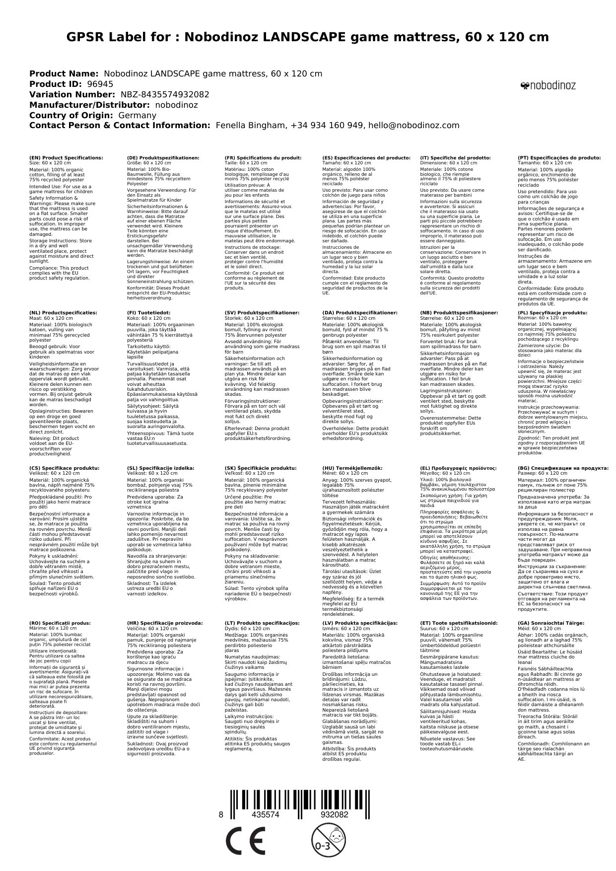 Stellen Sie eine Frage, um mehr über das Produkt zu erfahrenLANDSCAPE Spielmatratze, 60 x 120 cm: Ihre nachhaltige und gemütliche Spielwiese