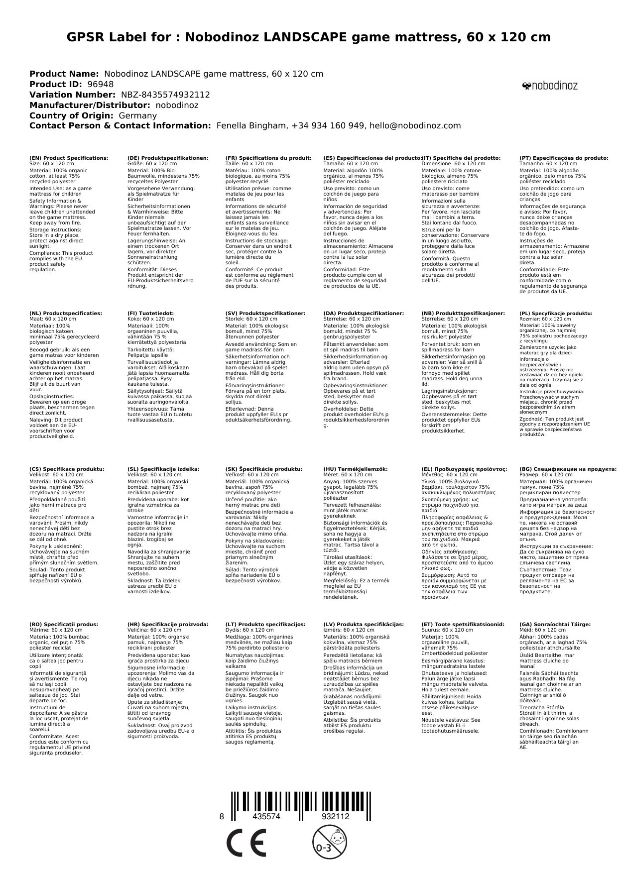Stellen Sie eine Frage, um mehr über das Produkt zu erfahrenLANDSCAPE Spielmatratze, 60 x 120 cm: Ihre nachhaltige und gemütliche Spielwiese