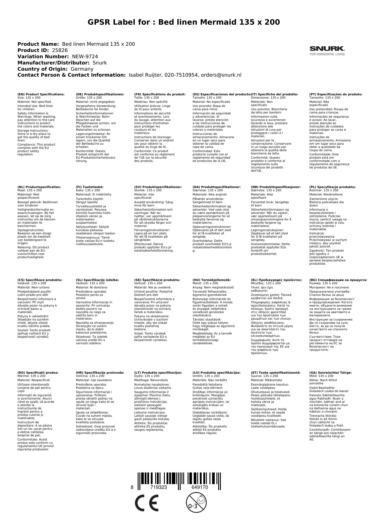 Snurk Bettwäsche Meerjungfrau 135 x 200