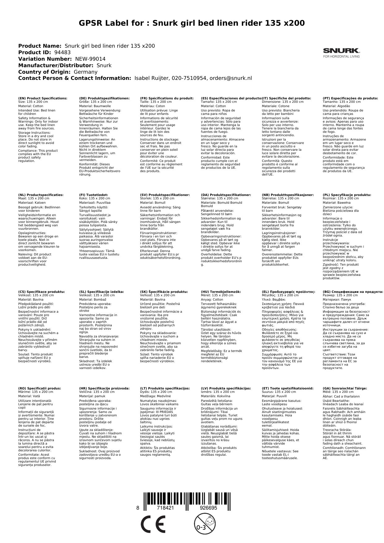 Stellen Sie eine Frage, um mehr über das Produkt zu erfahrenPhänomenal, originell und ziemlich witzig - So könnte man diese fabelhafte Kinderbettwäsche von Snurk umschreiben.