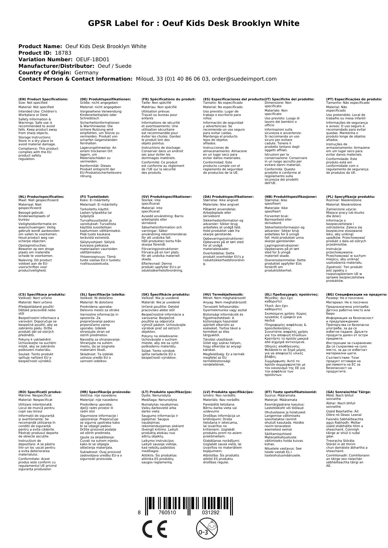 Alle Möbel von Oeuf werden in Europa in FSC zertifizierten Betrieben nachhaltig produziert und erfüllen alle Sicherheitsstandards (EU - Amerika - Australien - Kanada). Alle Lacke, mit denen die Oberfläche behandelt ist, sind lösungsmittelfrei und auf Wasserbasis. Die verwendeten MDF-Platten sind aus ökologischer Herstellung und entsprechend furniert.