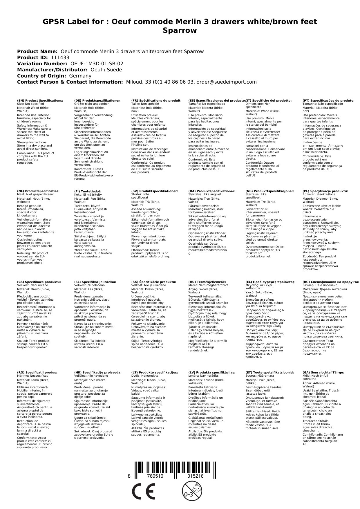 Die Kommode wird für Sie bei Oeuf bestellt. Sobald sie bei uns eingetroffen ist, verschicken wir sie per Spedition weiter zu Ihnen. Wenn es soweit ist, informieren wir Sie rechtzeitig vorher entsprechend. Bitte beachten Sie, dass die Standardlieferung bis zur Bordsteinkante erfolgt. Sollten Sie eine Lieferung bis in Ihr Haus wünschen, dann sprechen Sie uns bitte im Vorfeld an.