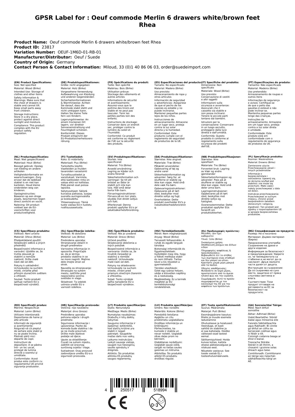 Die Kommode wird für Sie bei Oeuf bestellt. Sobald sie bei uns eingetroffen ist, verschicken wir sie per Spedition weiter zu Ihnen. Wenn es soweit ist, informieren wir Sie rechtzeitig vorher entsprechend. Bitte beachten Sie, dass die Standardlieferung bis zur Bordsteinkante erfolgt. Sollten Sie eine Lieferung bis in Ihr Haus wünschen, dann sprechen Sie uns bitte im Vorfeld an.