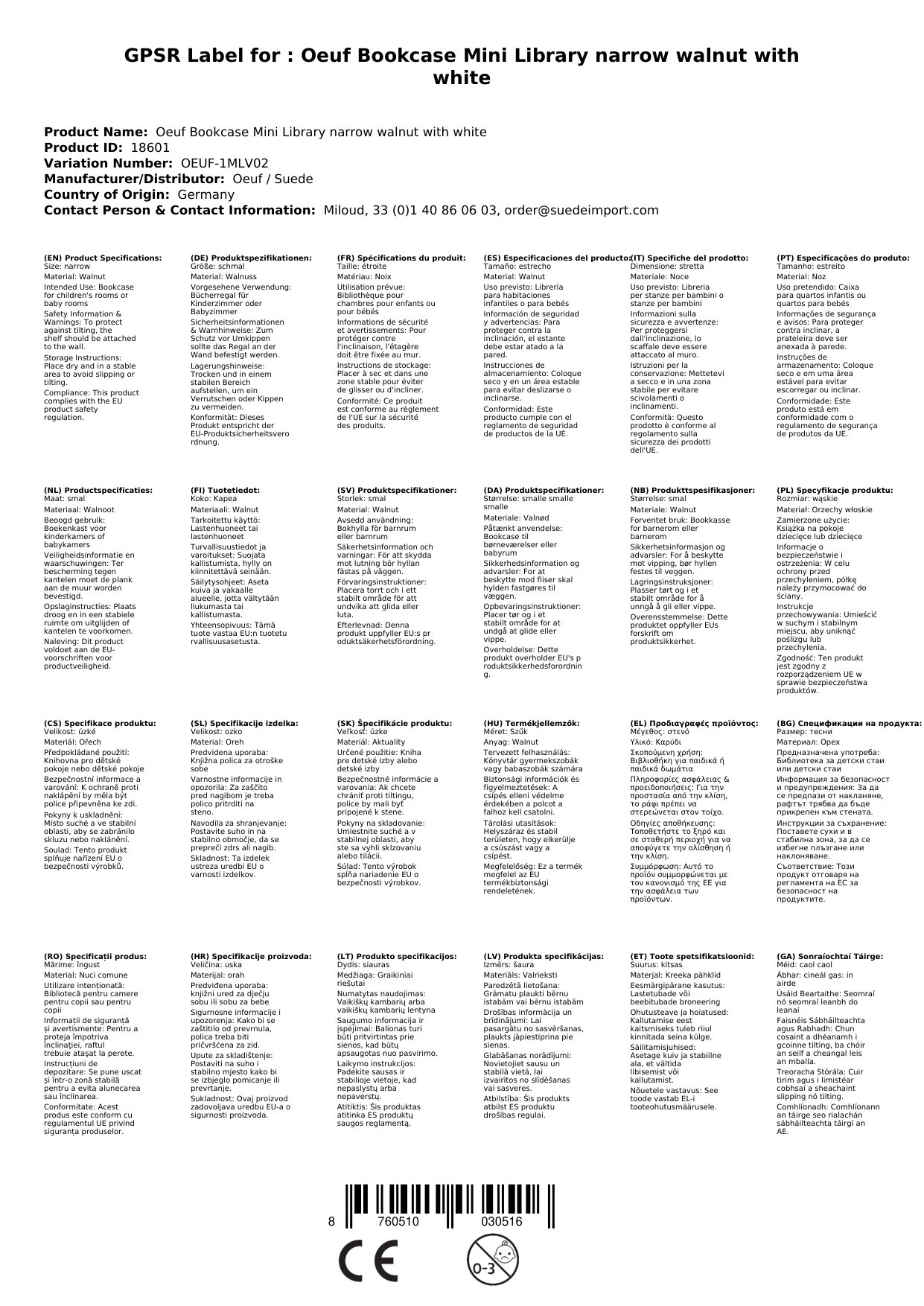 Oeuf Bücherregal Mini Library schmal Walnuss mit weiß