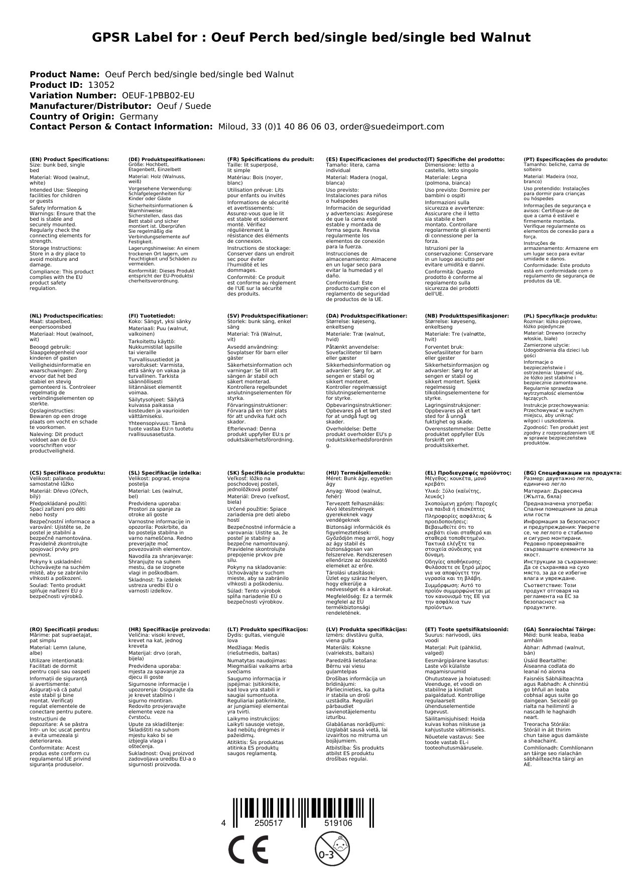 Oeuf Perch Hochbett/Etagenbett/Einzelbett Walnuss