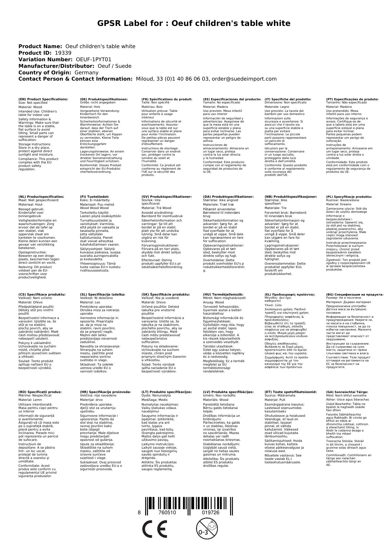 Die Möbel von Oeuf werden in Europa in FSC zertifizierten Betrieben nachhaltig produziert und erfüllen alle Sicherheitsstandards (EU - Amerika - Australien - Kanada). Alle Lacke, mit denen die Oberfläche behandelt ist, sind lösungsmittelfrei und auf Wasserbasis. Die verwendeten MDF-Platten sind aus ökologischer Herstellung und entsprechend furniert.