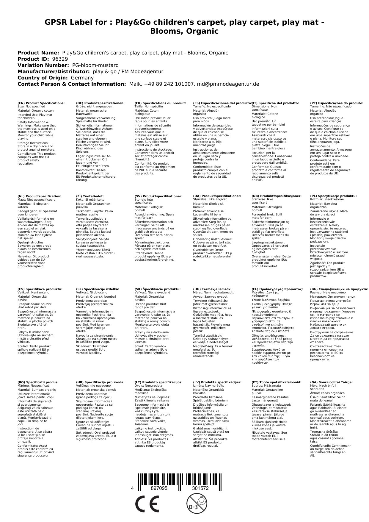 Stellen Sie eine Frage, um mehr über das Produkt zu erfahrenPlay&Go Kinderteppich, Spielteppich, Spielmatte - Blühen, Organic