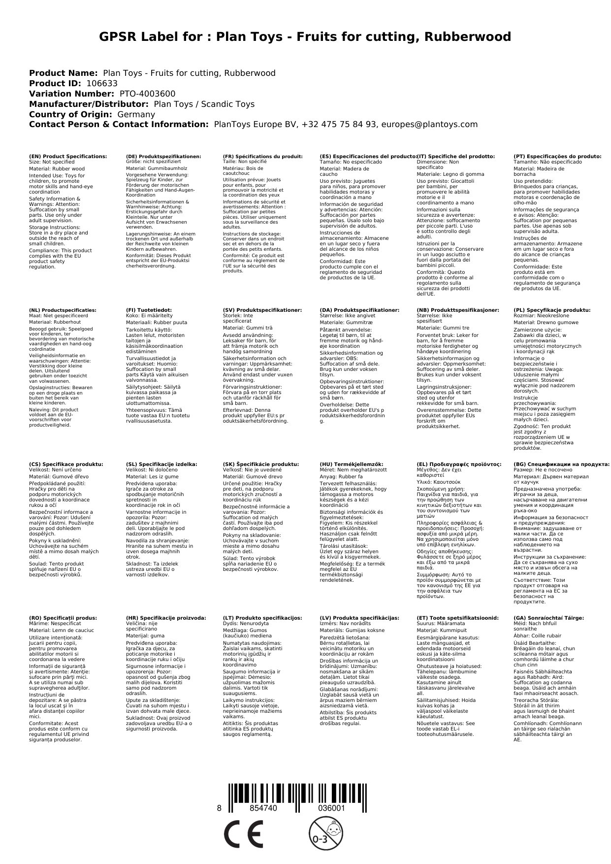 Stellen Sie eine Frage, um mehr über das Produkt zu erfahrenPlan Toys - Früchte zum Schneiden - Kinderküche Zubehör, Gummibaumholz