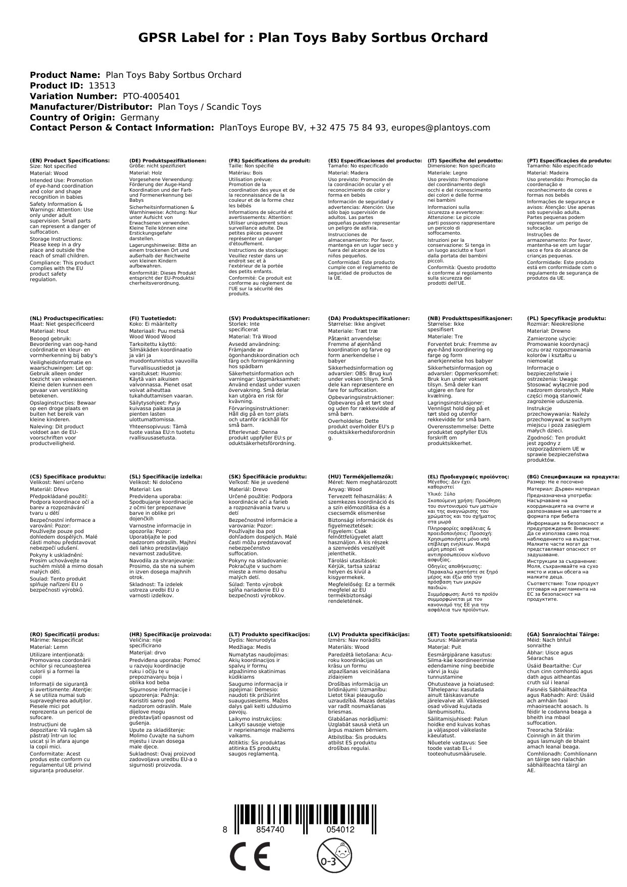 Plan Toys Baby Sortierbus Orchard