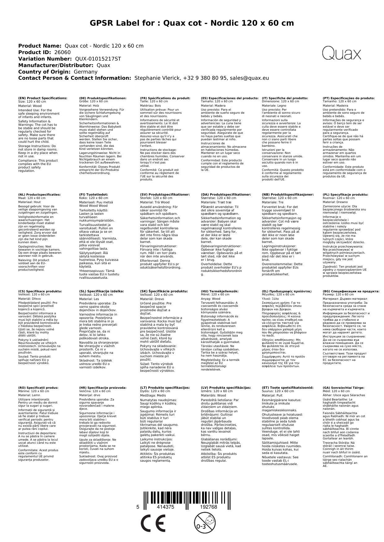 Stellen Sie eine Frage, um mehr über das Produkt zu erfahrenQuax Babybett - Nordic 120 x 60 cm