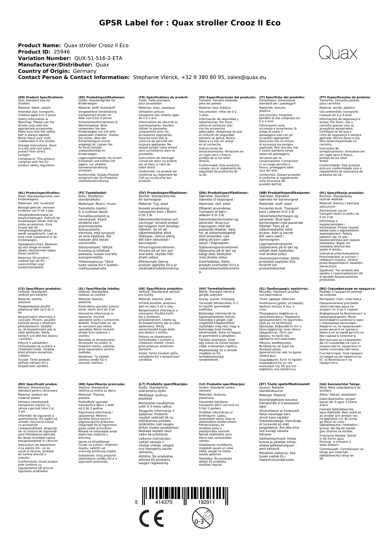 Stellen Sie eine Frage, um mehr über das Produkt zu erfahrenQuax Kinderwagen Crooz lI Eco Taupe