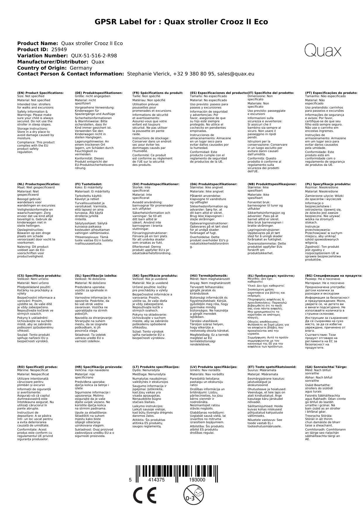 Stellen Sie eine Frage, um mehr über das Produkt zu erfahrenQuax Kinderwagen Crooz lI Eco Taupe