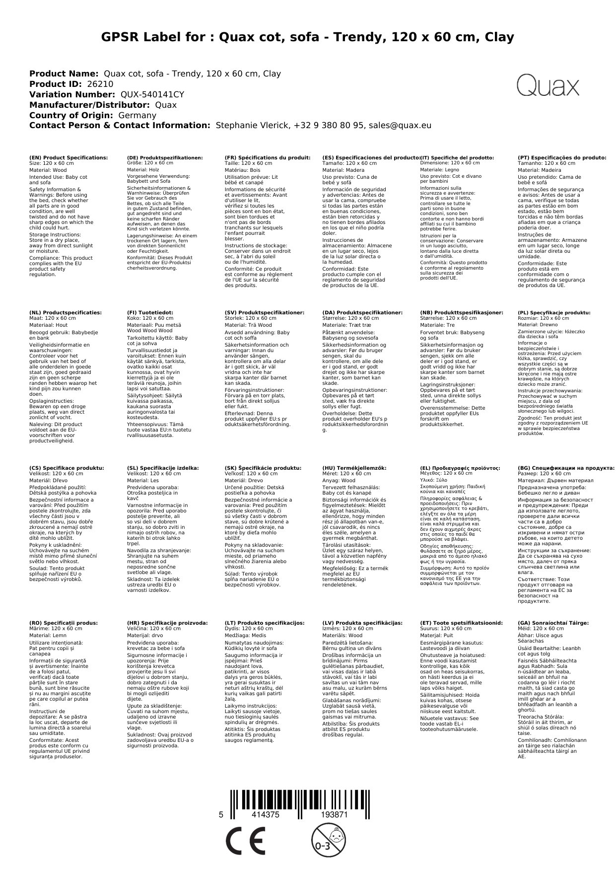 Stellen Sie eine Frage, um mehr über das Produkt zu erfahrenQuax Babybett, Sofa - Trendy, 120 x 60 cm, Clay