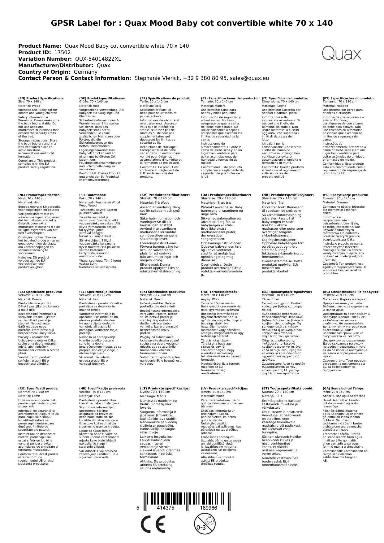 Das Babybett ist auch in anderen Ausführungen erhältlich. Darauf und auch auf alle anderen Möbel dieser Kollektion verweisen wir weiter unten. Alles von Quax zeigen wir Ihnen - übersichtlich nach Kategorien sortiert - in unserem großen Quax Markenshop.