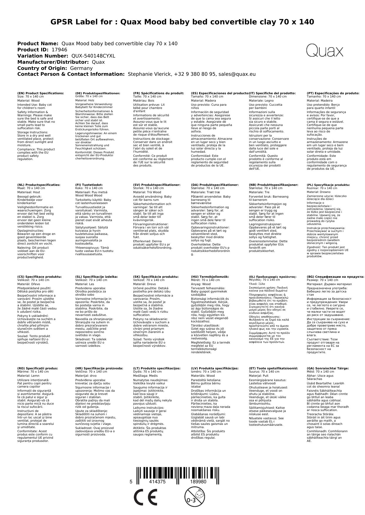 Das Babybett ist auch in anderen Ausführungen erhältlich. Darauf und auch auf alle anderen Möbel dieser Kollektion verweisen wir weiter unten. Alles von Quax zeigen wir Ihnen - übersichtlich nach Kategorien sortiert - in unserem großen Quax Markenshop.