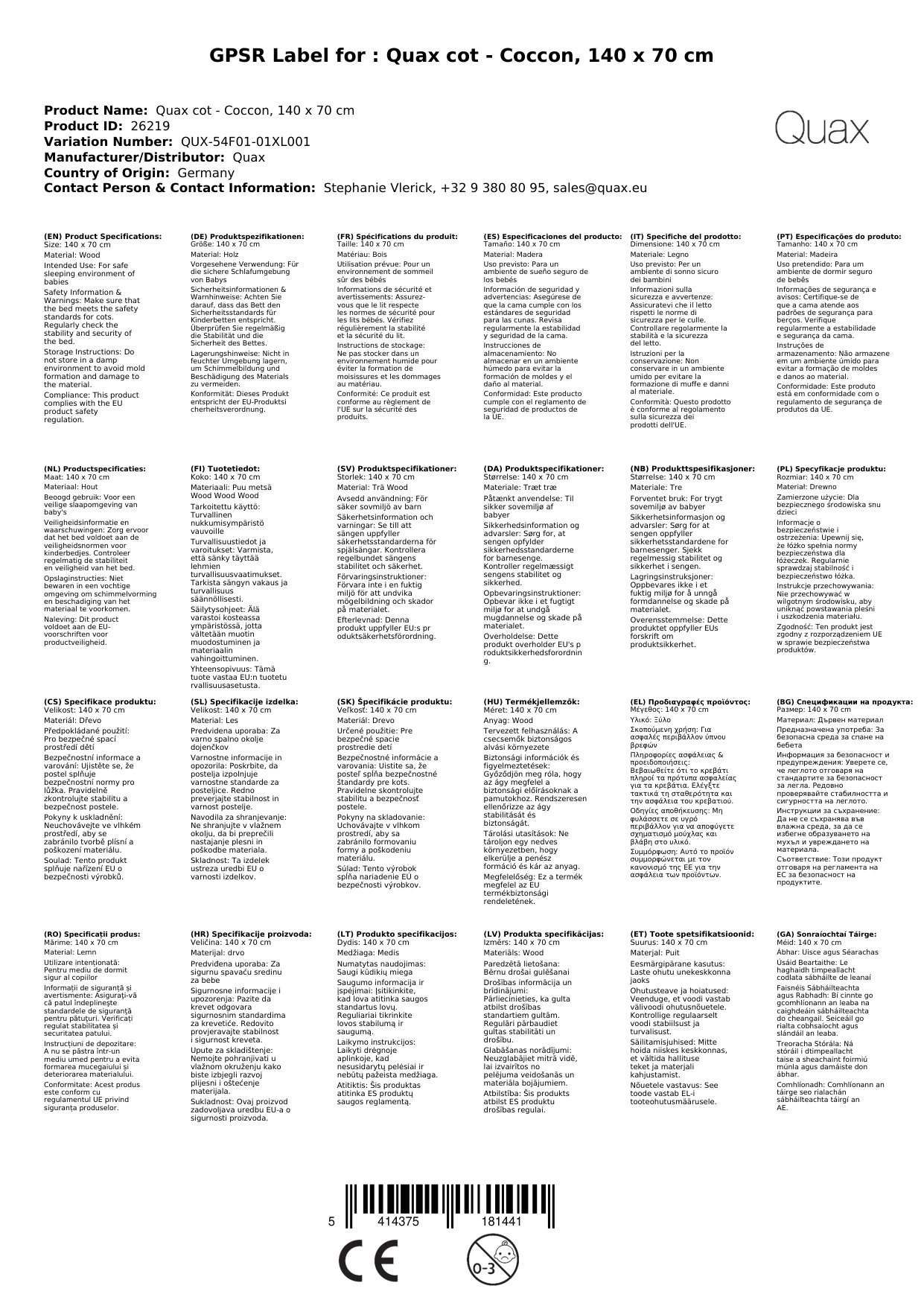 Stellen Sie eine Frage, um mehr über das Produkt zu erfahrenQuax Babybett - Coccon, 140 x 70 cm
