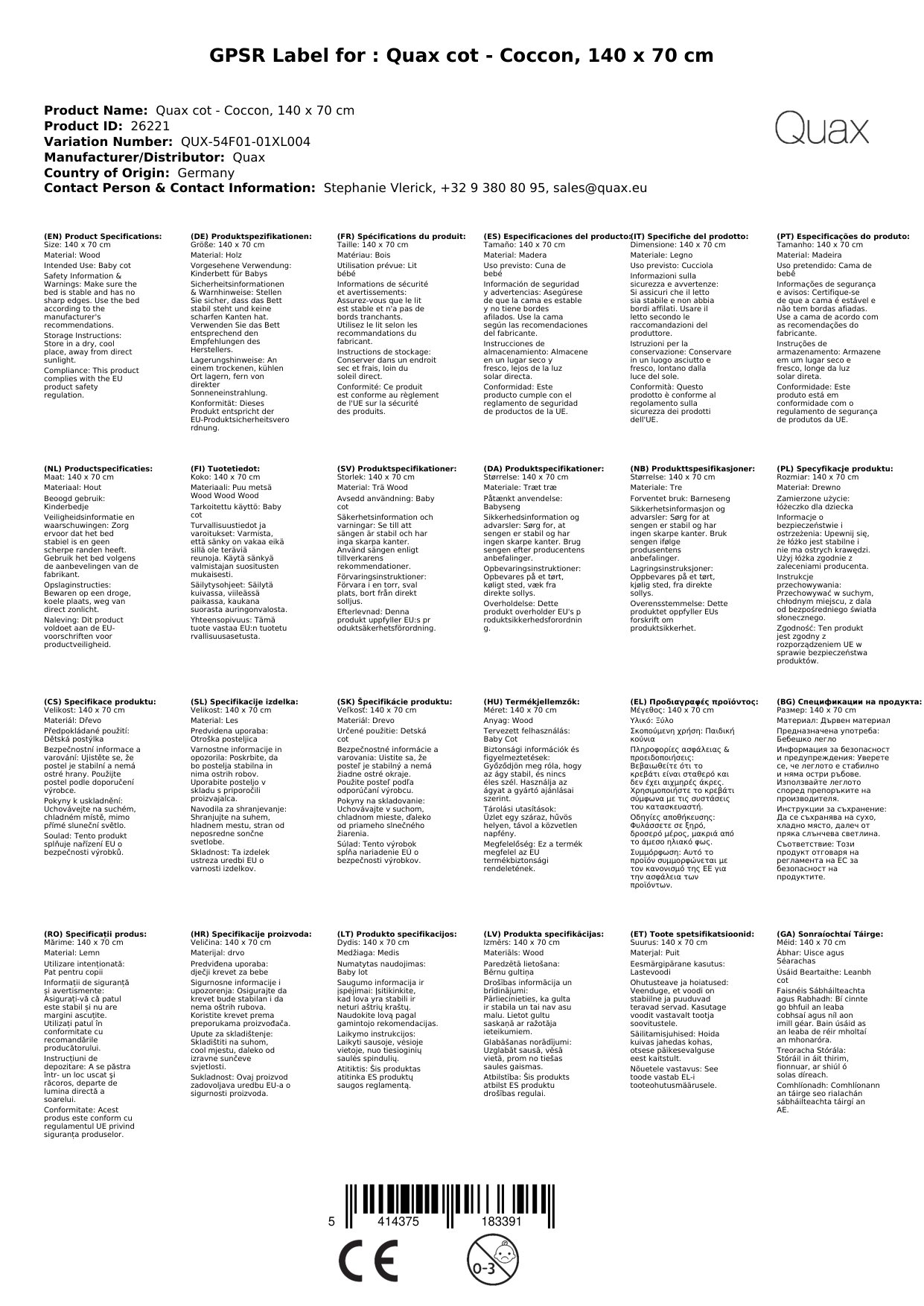 Stellen Sie eine Frage, um mehr über das Produkt zu erfahrenQuax Babybett - Coccon, 140 x 70 cm