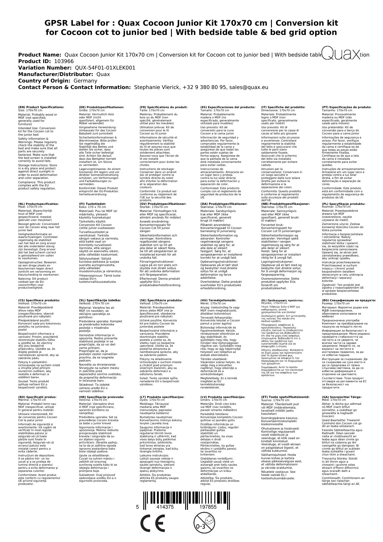 Stellen Sie eine Frage, um mehr über das Produkt zu erfahrenDas Quax Cocoon Junior Kit 170x70 cm: Der perfekte Umbausatz für das Cocoon Babybett zum Juniorbett mit Nachttisch & Bettgitter-Option