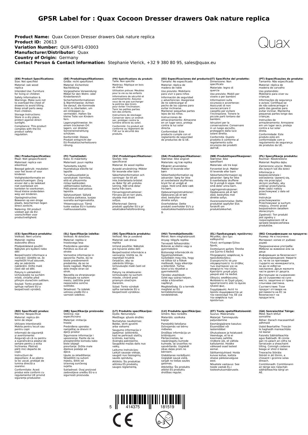 Quax Cocoon Kommode Schubladen Eiche natur Nachbildung