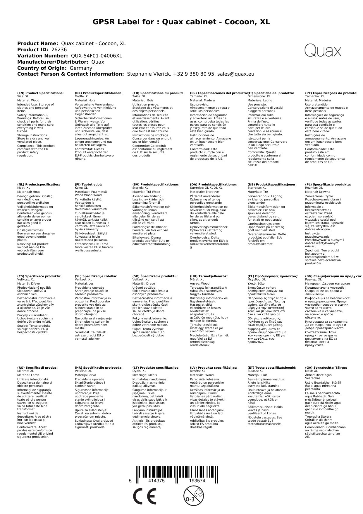 Stellen Sie eine Frage, um mehr über das Produkt zu erfahrenQuax Schrank - Cocoon, XL