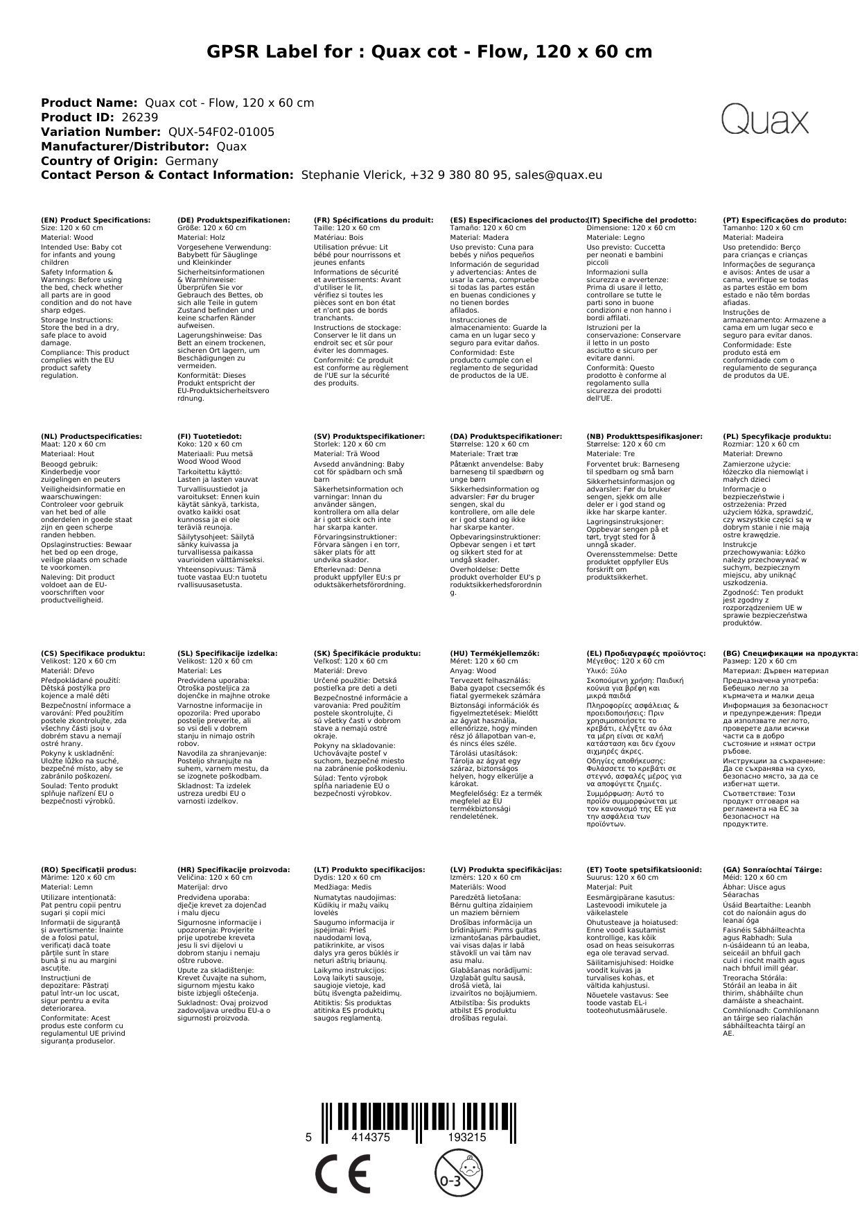 Stellen Sie eine Frage, um mehr über das Produkt zu erfahrenQuax Babybett - Flow, 120 x 60 cm