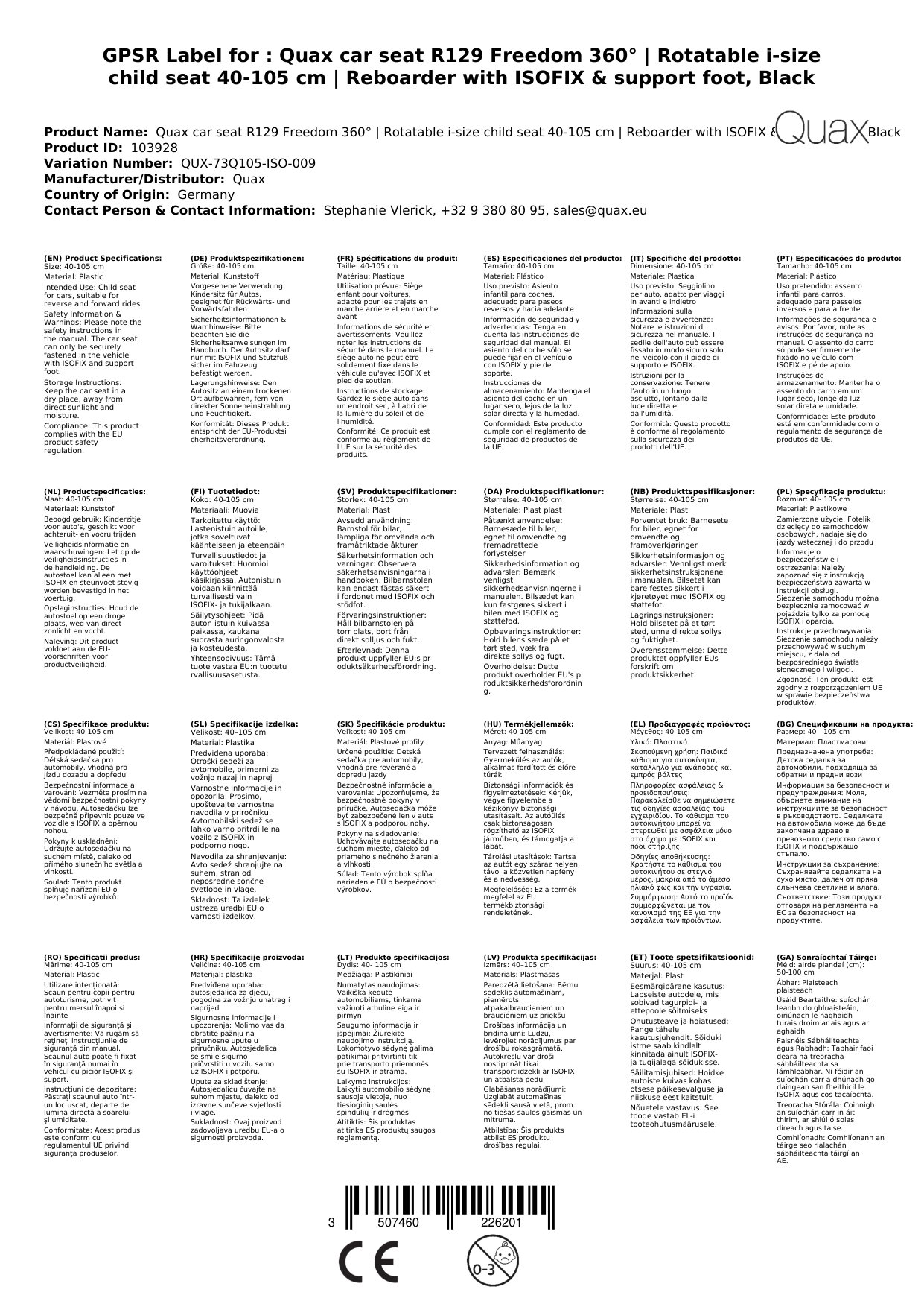 Stellen Sie eine Frage, um mehr über das Produkt zu erfahrenQuax Autositz R129 Freedom 360° | Drehbarer i-Size Kindersitz 40-105 cm | Reboarder mit ISOFIX & Stützfuß, Schwarz